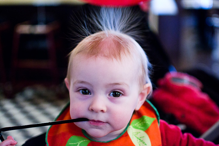 We had much fun at lunch time with the free balloon. We finally got Mabel’s hair to do something exciting!