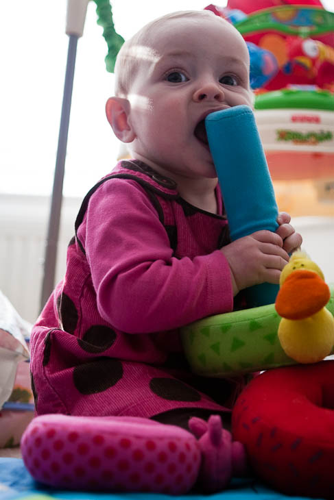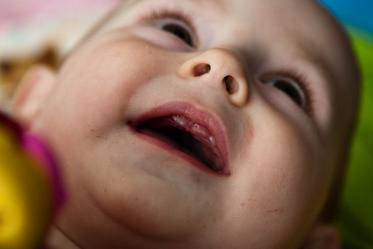 And you can just see her new top teeth. All four of them coming through at once. Yikes.
