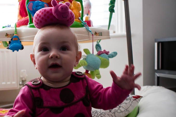 Mabel was a very lucky girl and came home from Felix and Betsy’s house with new toys and new clothes. She has taken quite a shine to the rings.