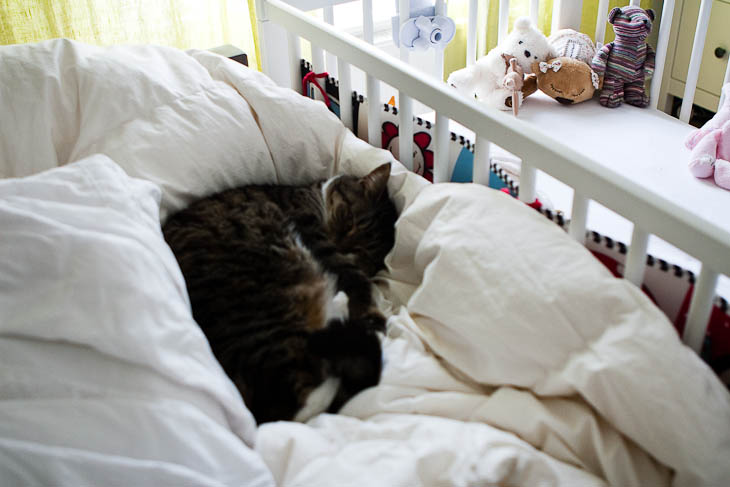 I forgot to post about this. Last week Mabel moved into her own cot